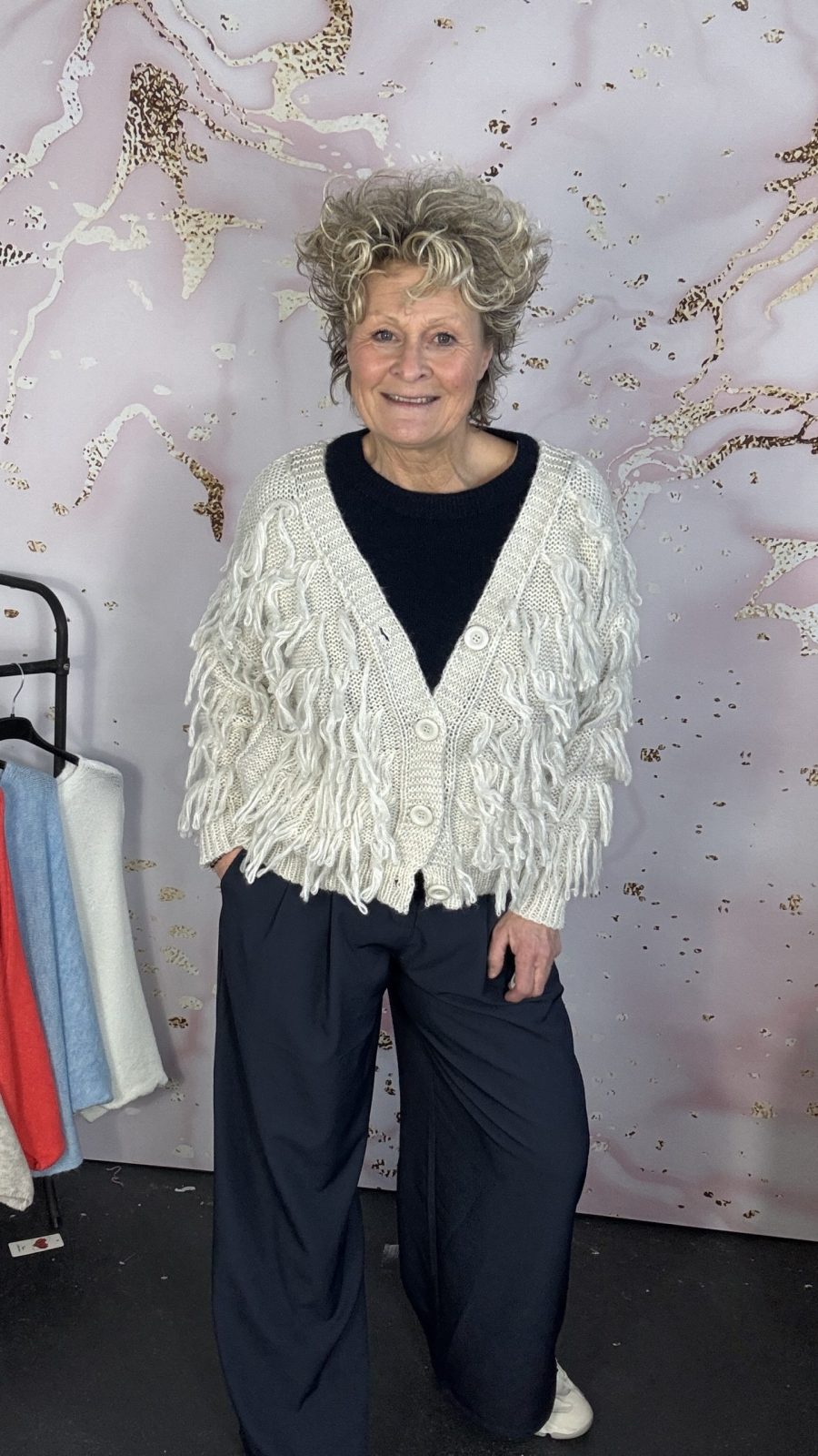 – Miriam draagt zoals normaal gesproken een maat M en is 1,75 m.