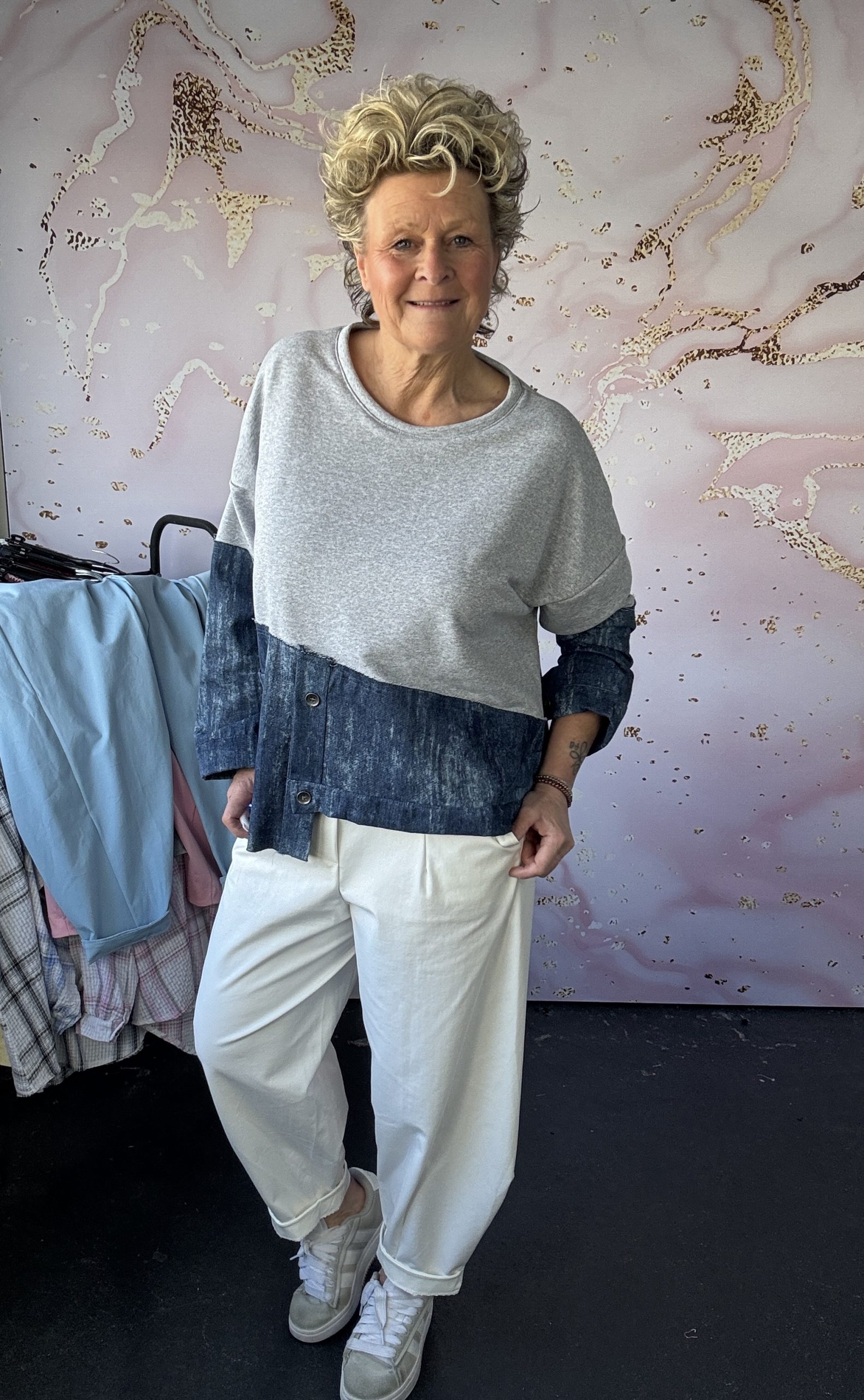 De sweater is van mooie sweaterstof en door de leuke look met jeans en knoopjes erg apart