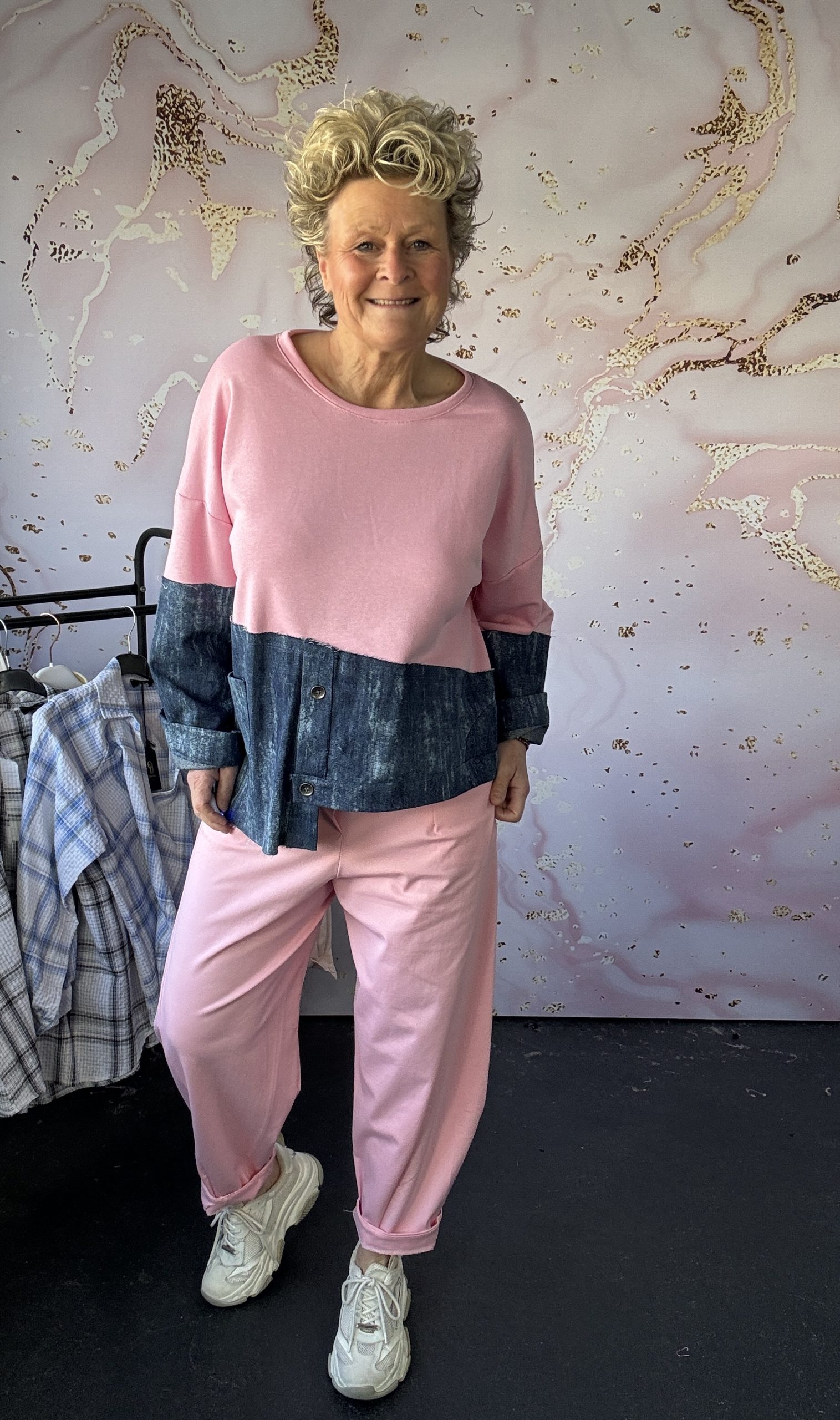 De sweater is van mooie sweaterstof en door de leuke look met jeans en knoopjes erg apart
