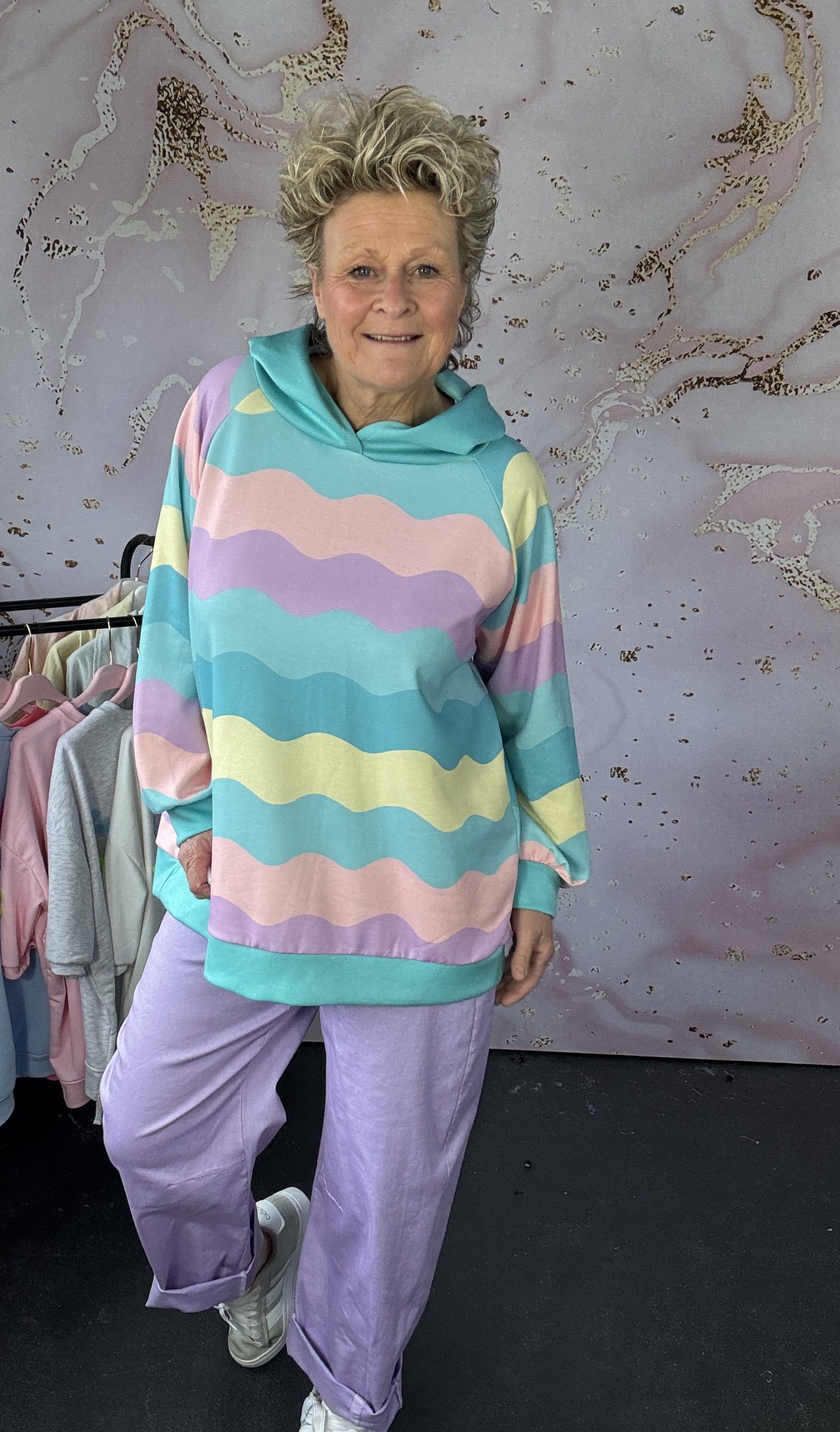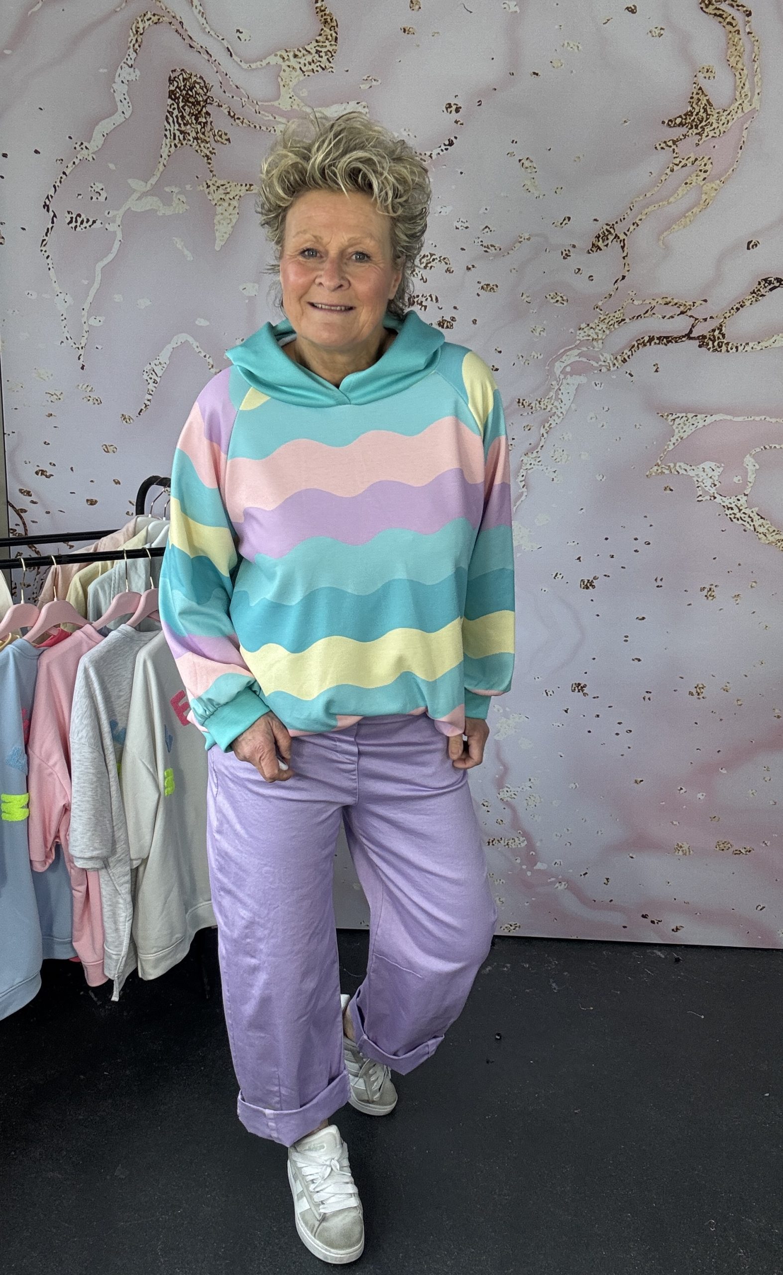 De Hoody sweater is van mooie sweaterstof en door de leuke kleurstelling heerlijk zomers