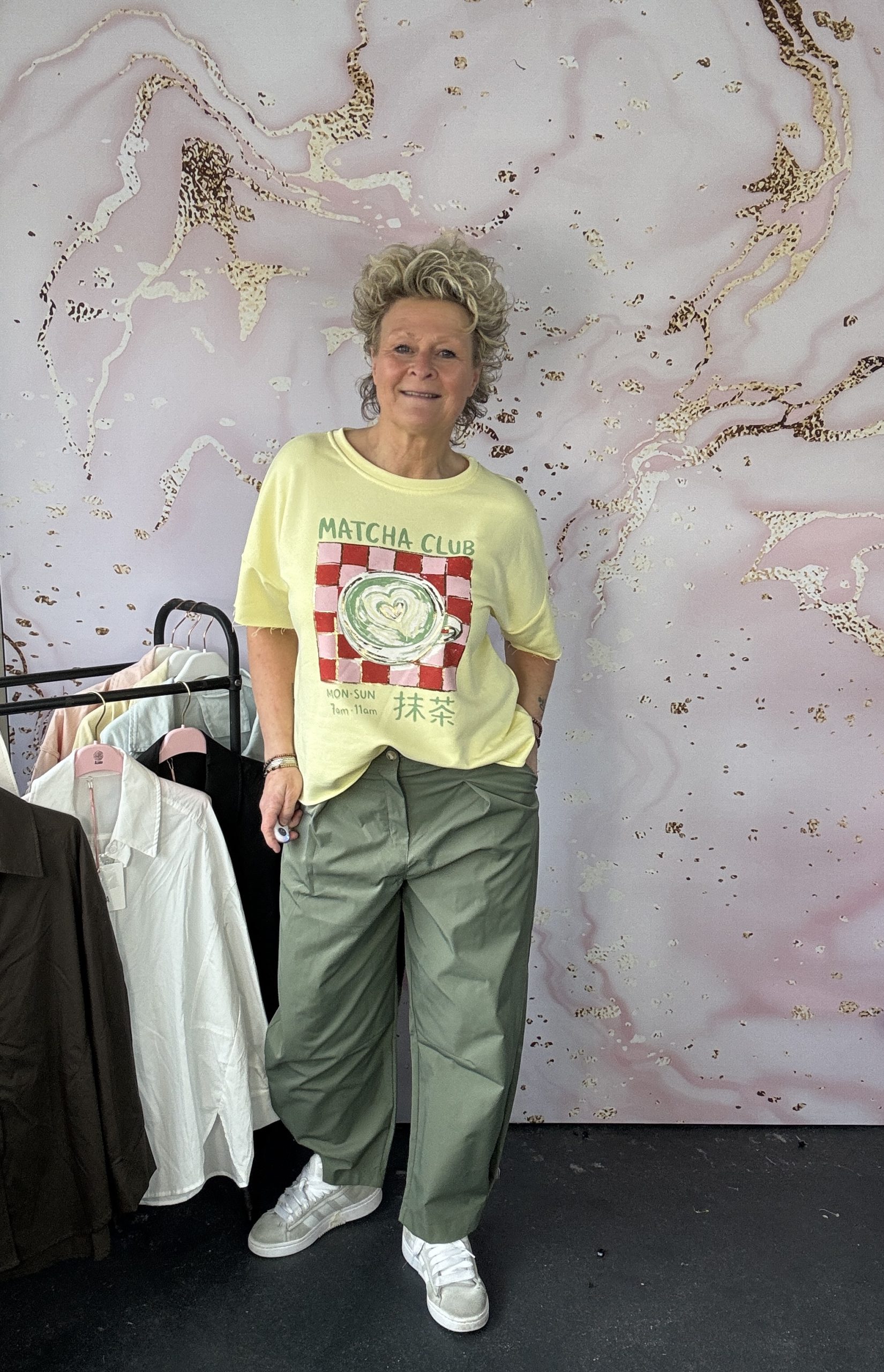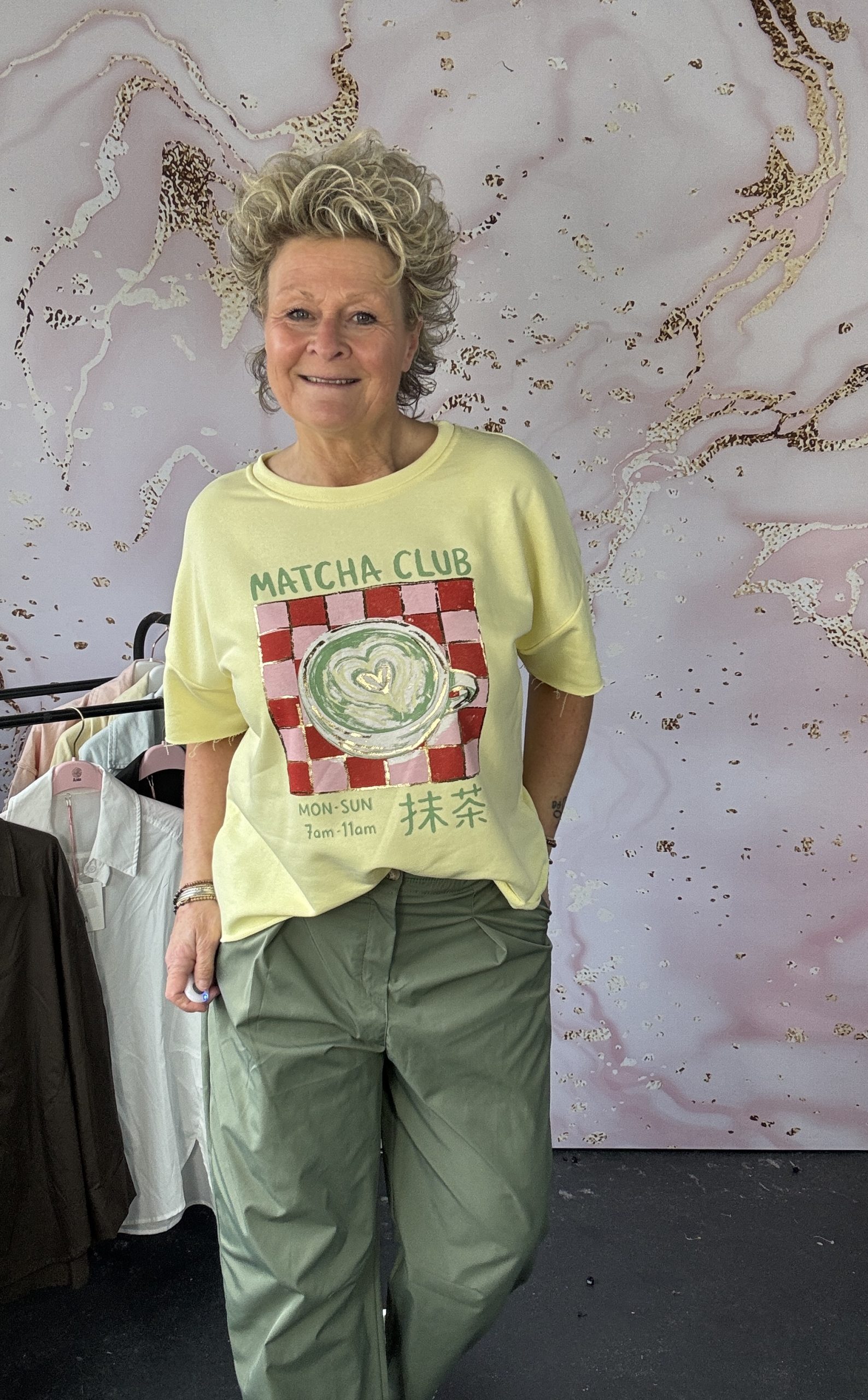 De sweater heeft een kort mouw en is qua materiaal en maat geweldig