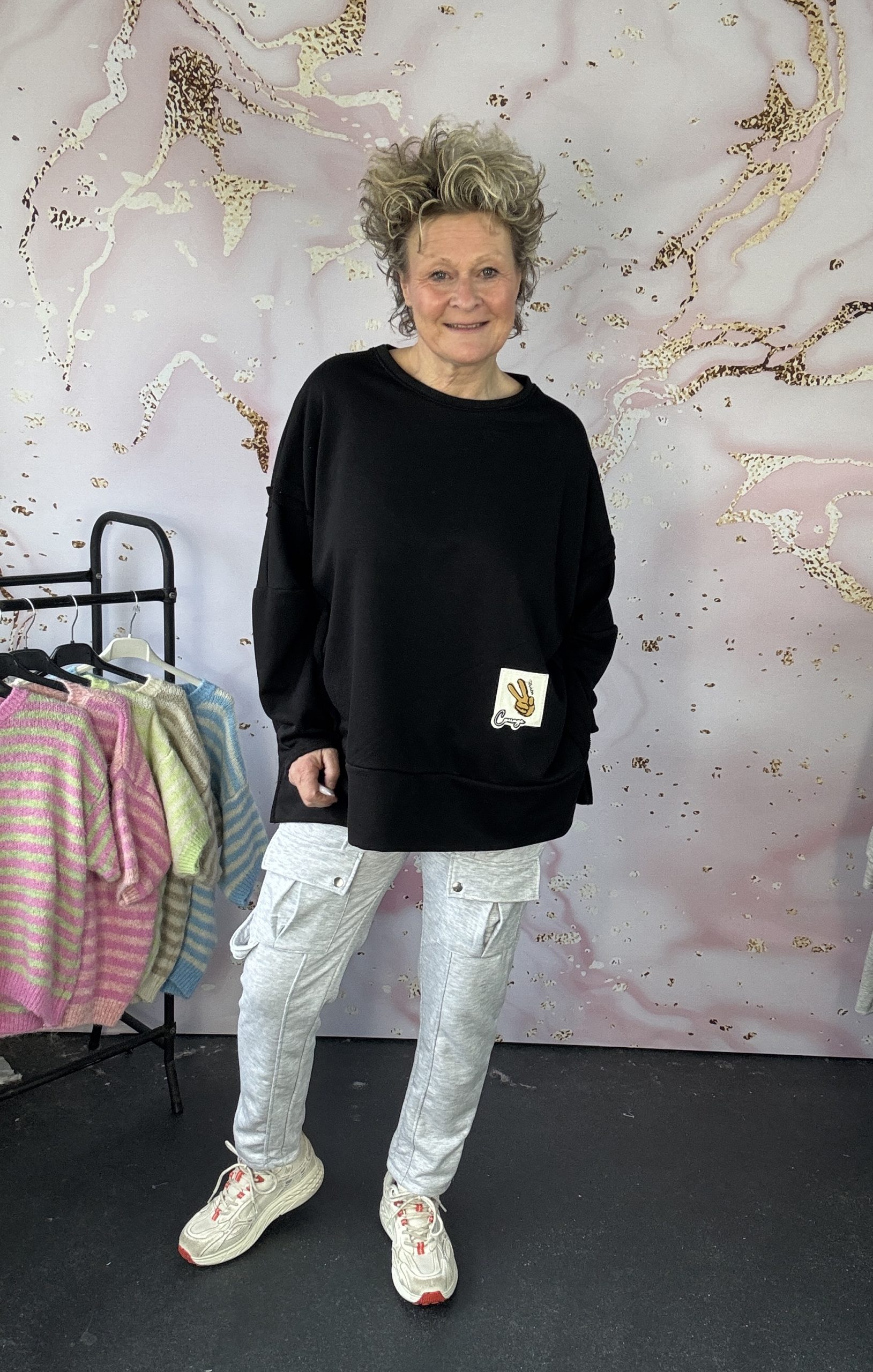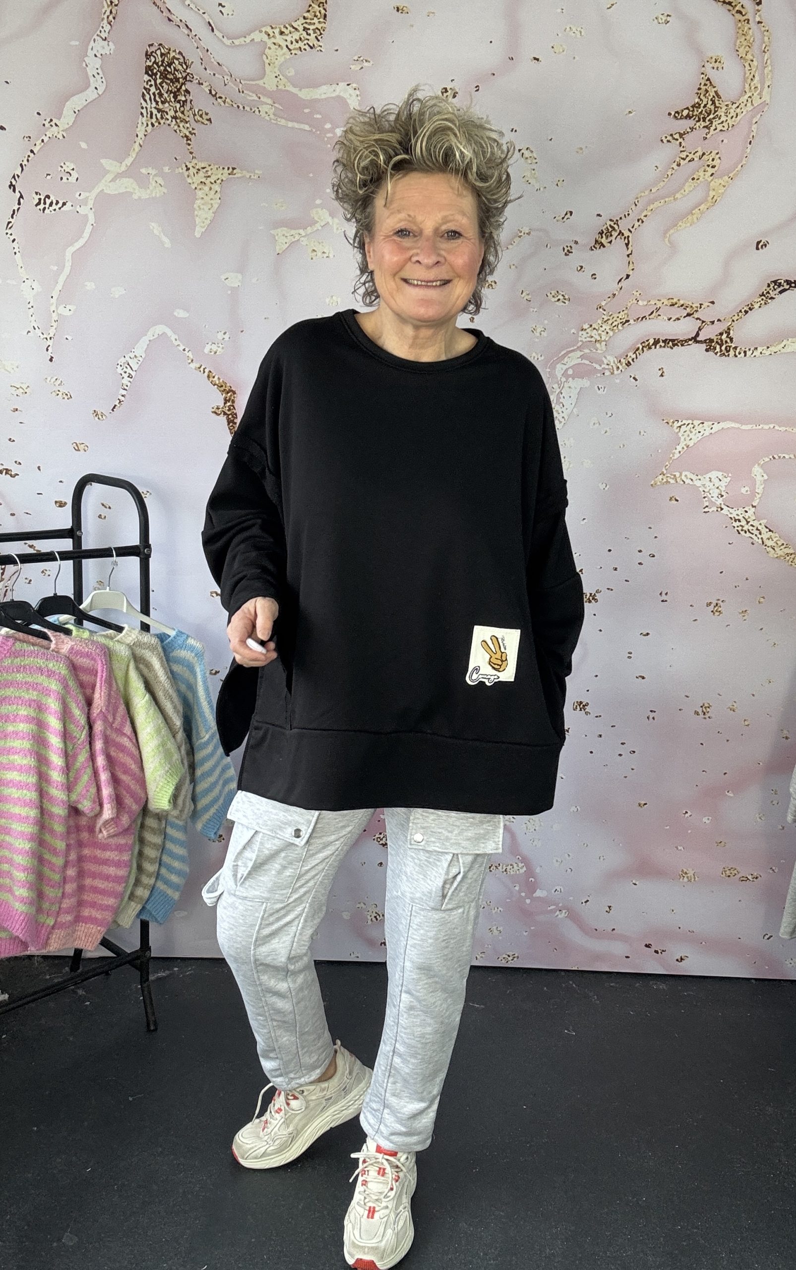 De sweater is leuk ruimvallend en die mooie zachte dikke sweat stof, geweldig model zonder poespas