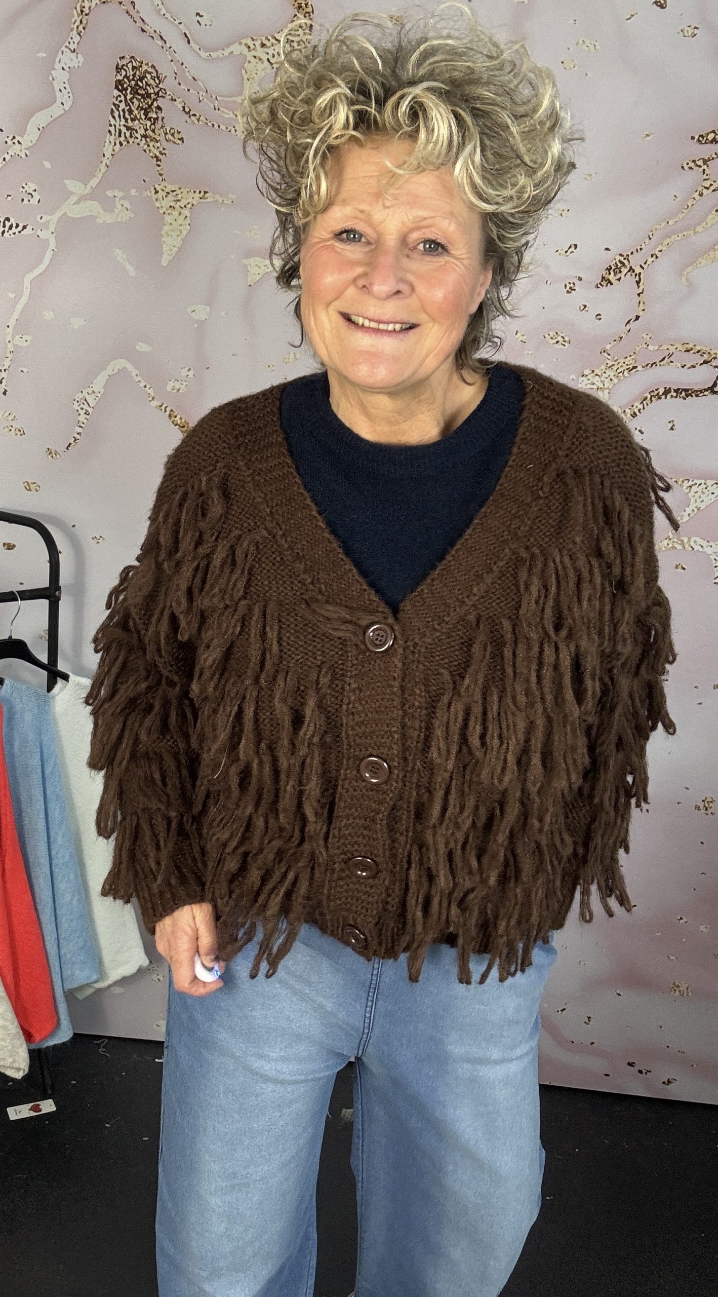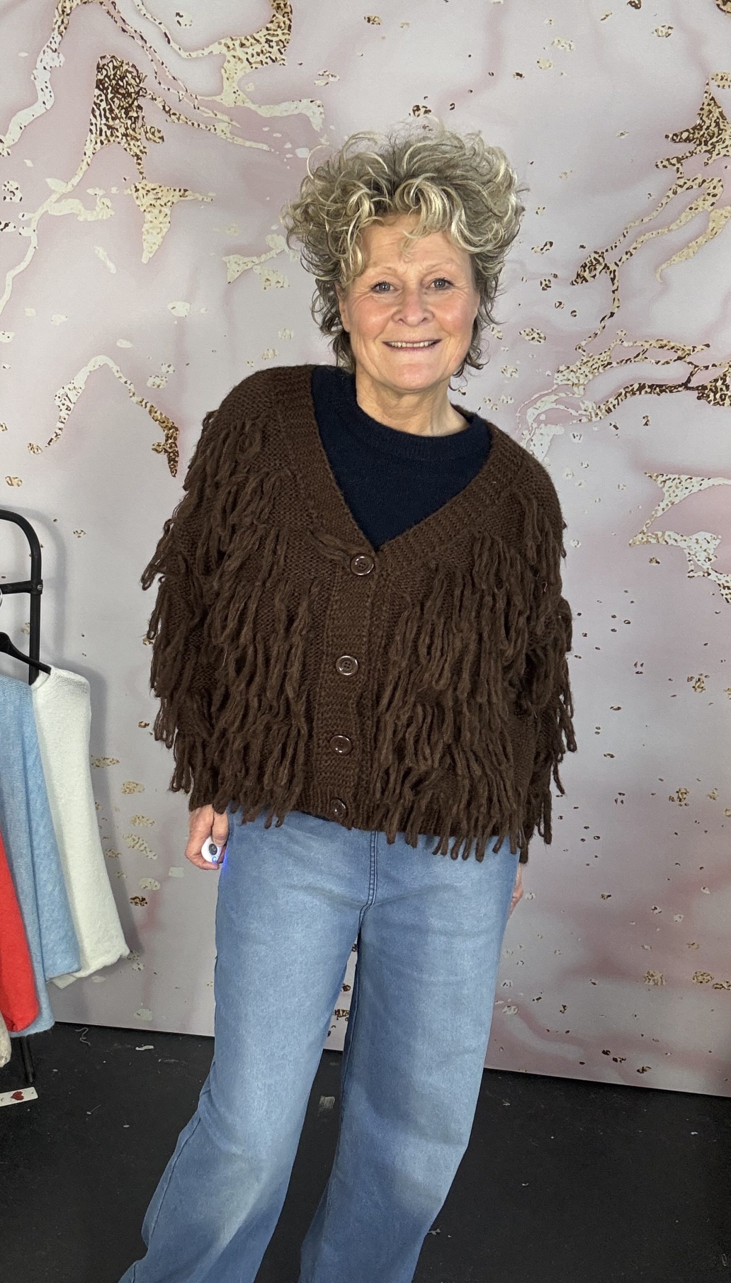 het geweldig vest heeft een leuke uitstraling door de slierten die er aan zitten, sluit dmv knopen