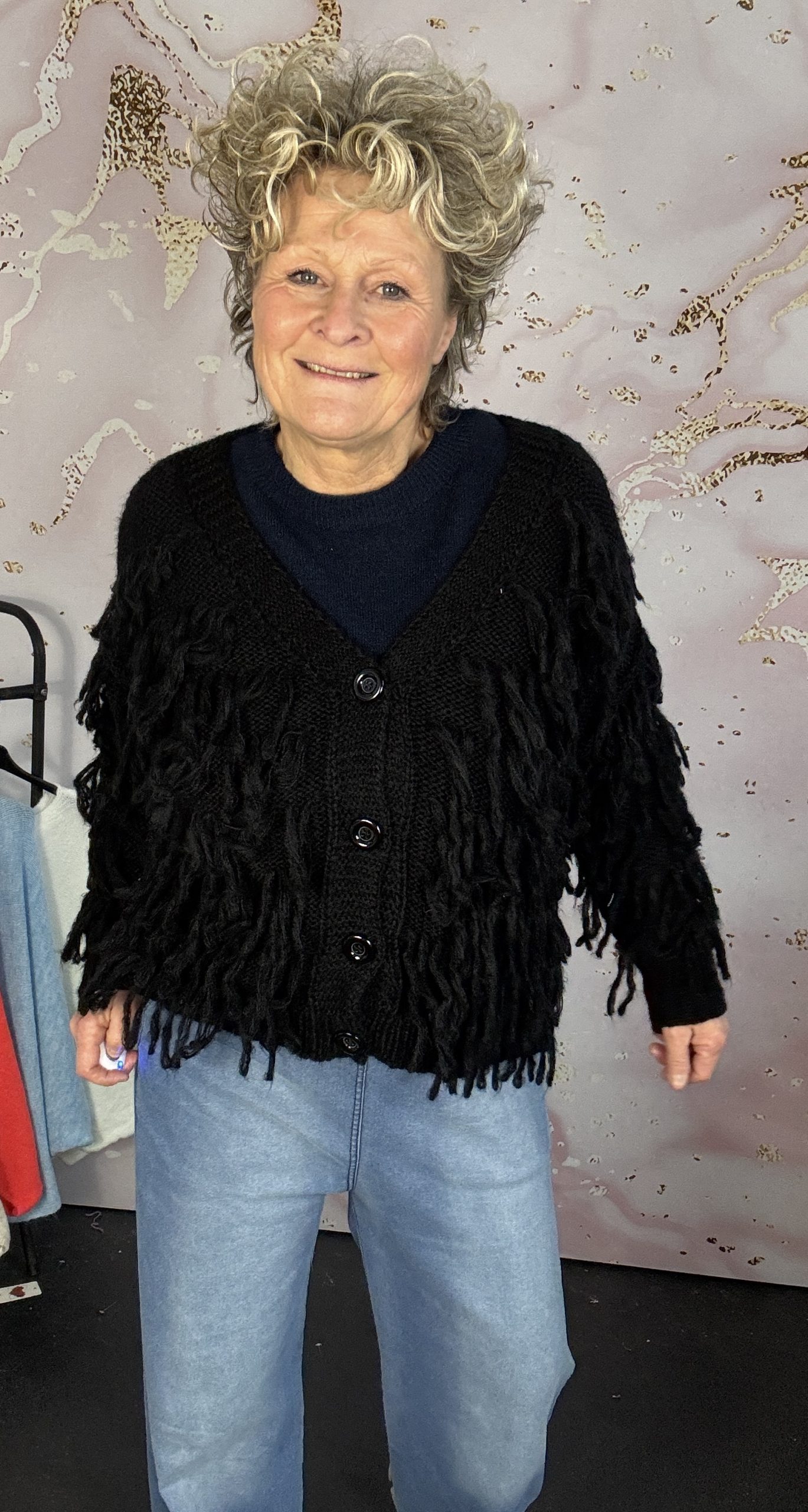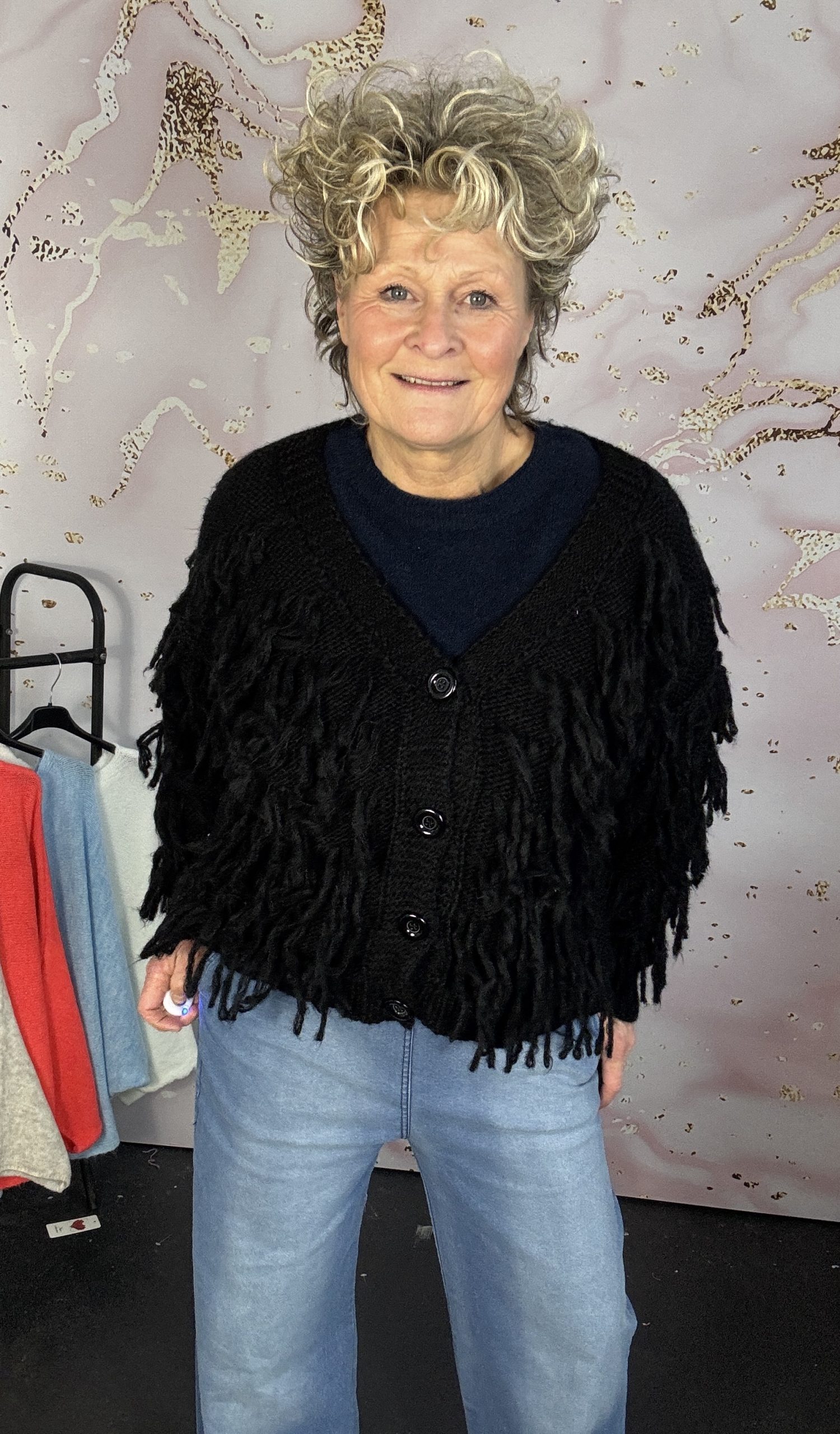 het geweldig vest heeft een leuke uitstraling door de slierten die er aan zitten, sluit dmv knopen